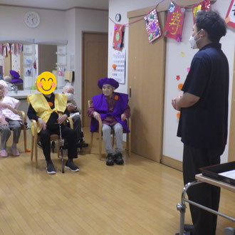 楽しいお話しや、脳トレになる問題なども織り交ぜて下さったりと、とても楽しい時間を過ごしていただくことができました。利用者様の中にはなつかしの曲を聞いて涙ぐんで喜んでくれる利用者様もいらっしゃいました。敬老会を盛り上げて下さり本当にありがとうございました😄